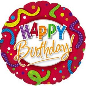 18 inch CTI Happy Birthday Red Stripes & Dots Foil Balloon - Packaged$1.42