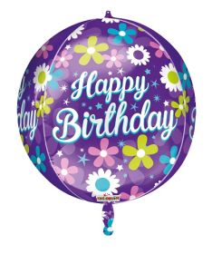 22 Inch Kaleidoscope Birthday Flowers On Purple Foil Sphere - 15 inch inflated - Pkg$1.99sold individually packaged Learn More