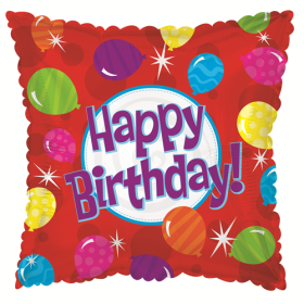 18 inch Foil Mylar Square Happy Birthday Bright Balloons Balloon - Flat$0.80